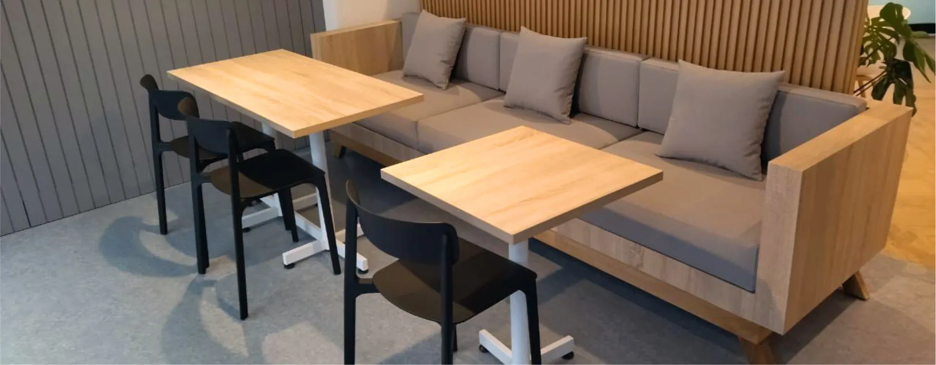 - Áreas Comunes: Perfecto para cafeterías, comedores, mesas de restaurante y salas de espera donde la exposición a humedad y limpieza frecuente es constante.