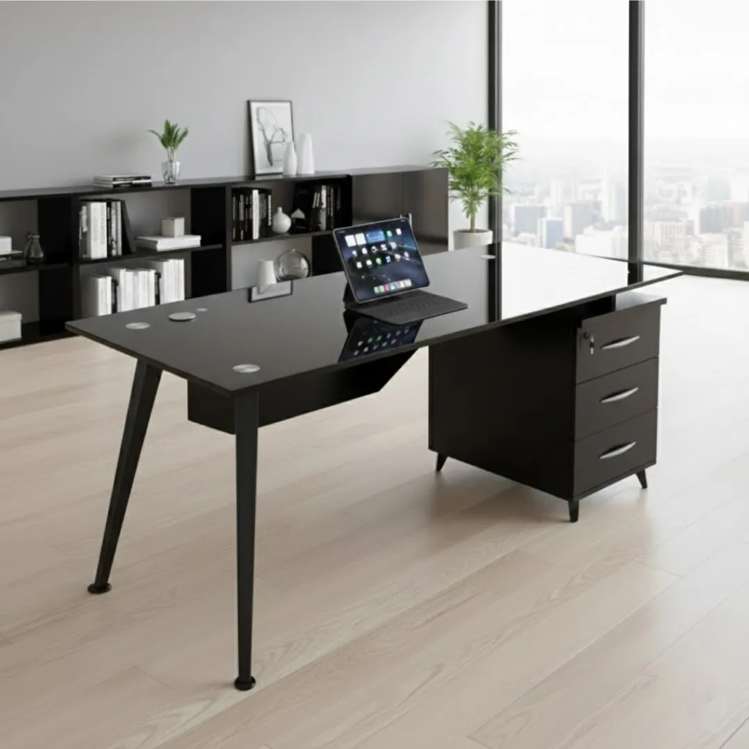 Escritorio en color negro combina estilo y funcionalidad, Con un diseño moderno y elegante, convirtiéndolo en una opción perfecta para tu oficina o hogar.