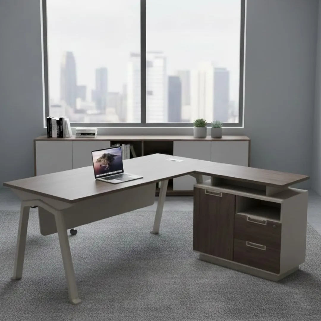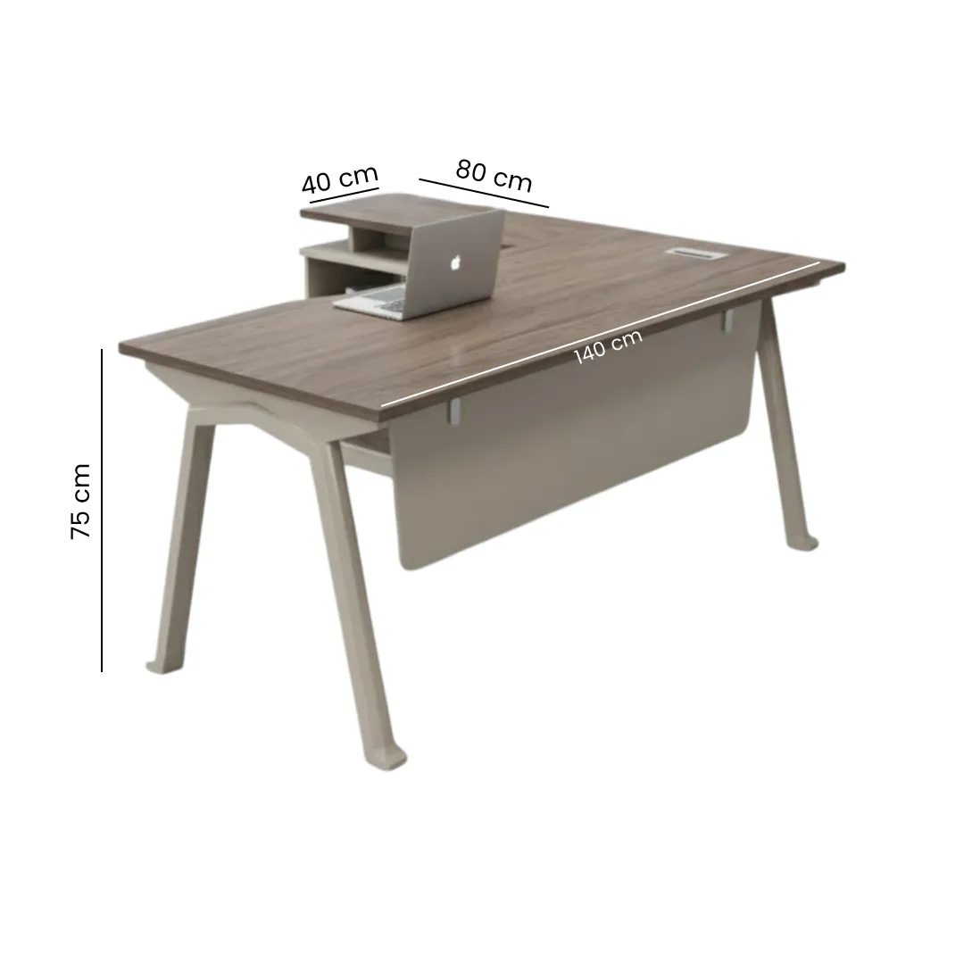 Su estructura robusta y acabados de alta calidad garantizan durabilidad, mientras que su elegante diseño aporta un toque moderno y profesional al ambiente de trabajo. Con una amplia superficie, este escritorio optimiza el espacio, ofreciendo comodidad y organización. Una mini credenza independiente para que puedas ubicarlo en el lugar que creas conveniente