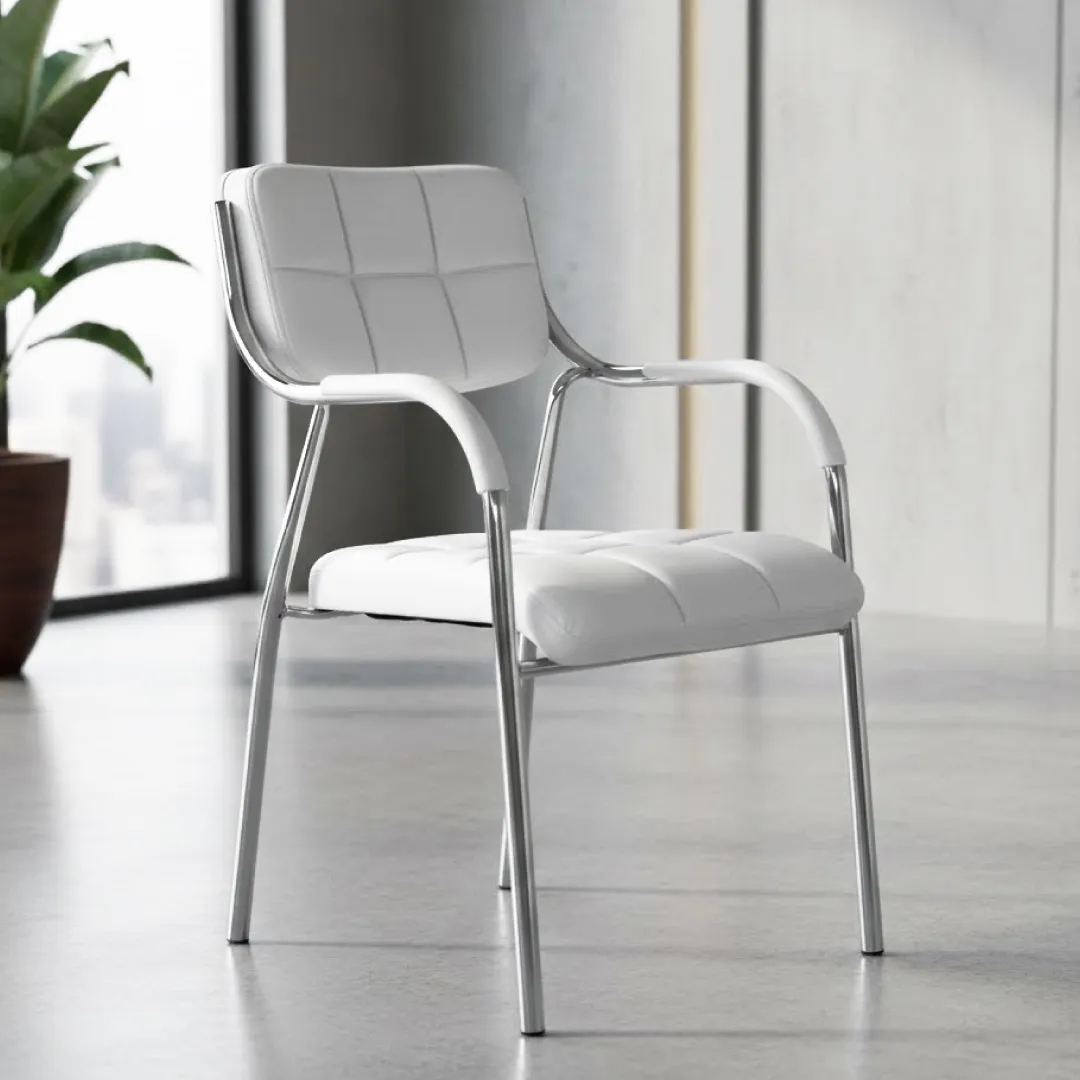 SILLA MILOS EN CUERINA BLANCA CON ESTRUCTURA CROMADA