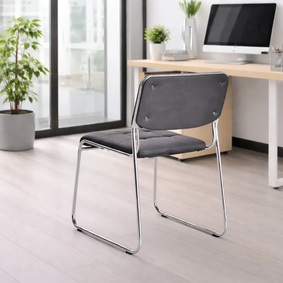 Estructura resistente: Base metálica cromada tipo trineo que brinda estabilidad y durabilidad.
