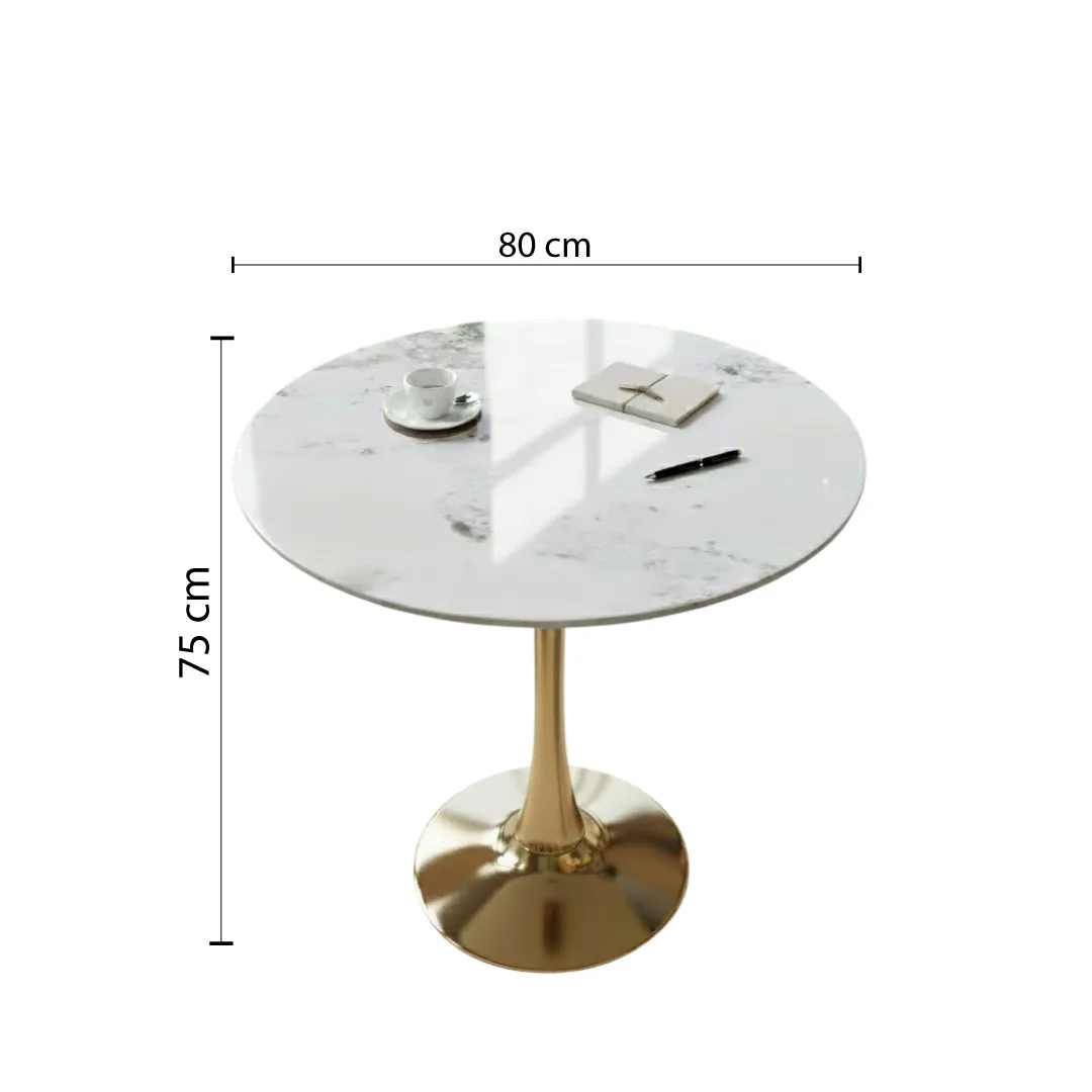 MESA REDONDA FRIDA 80CM COLOR BLANCA ON BASE DORADA