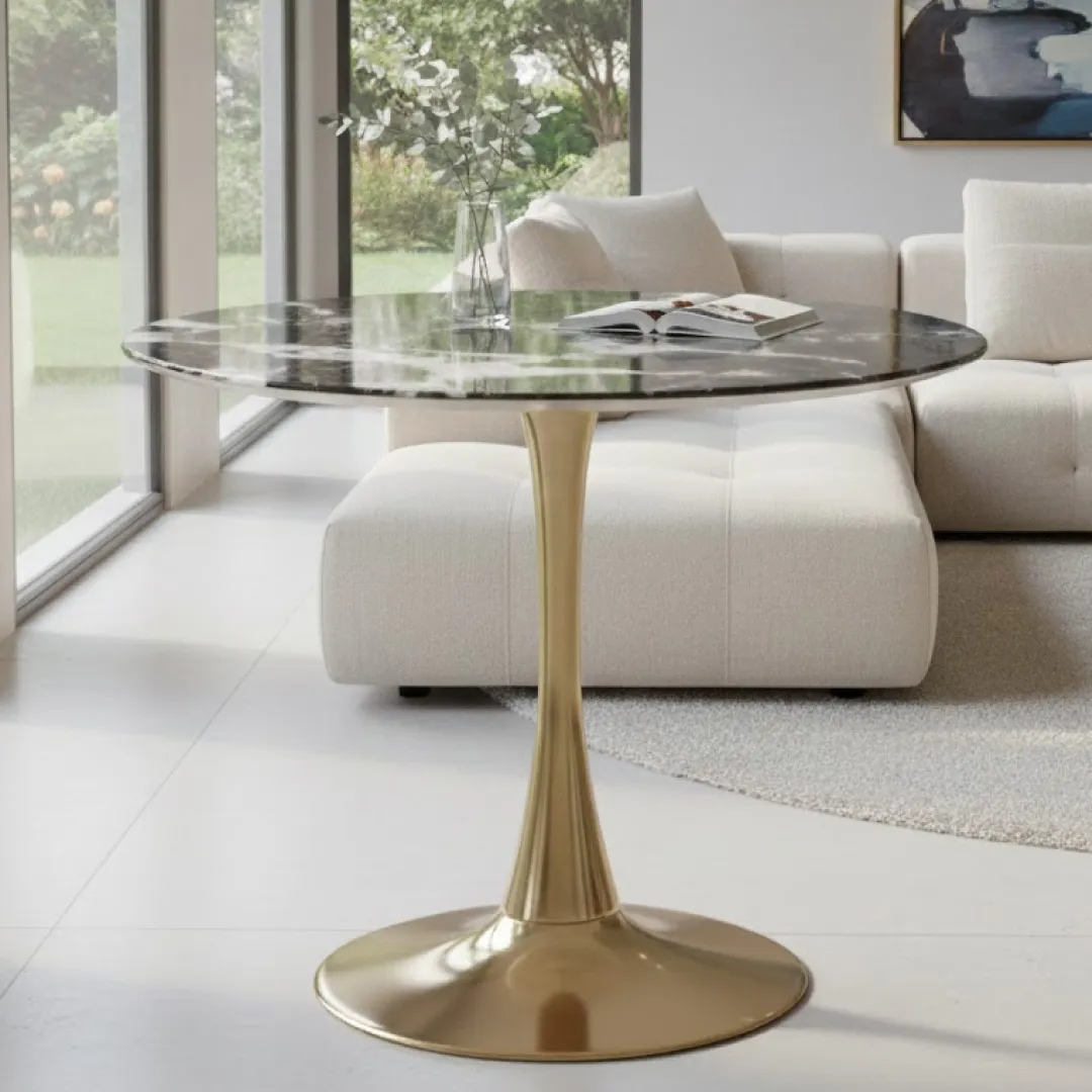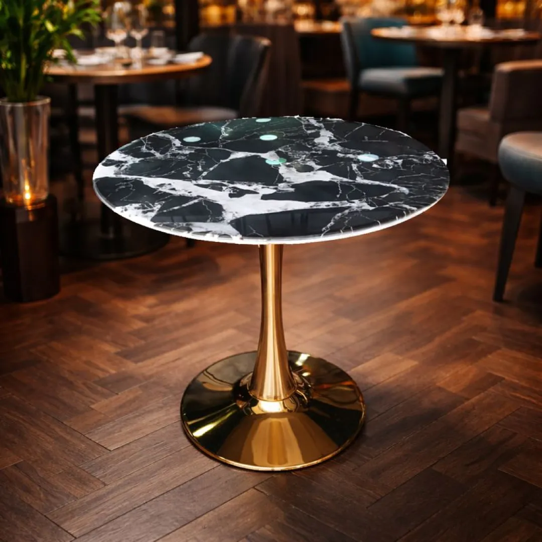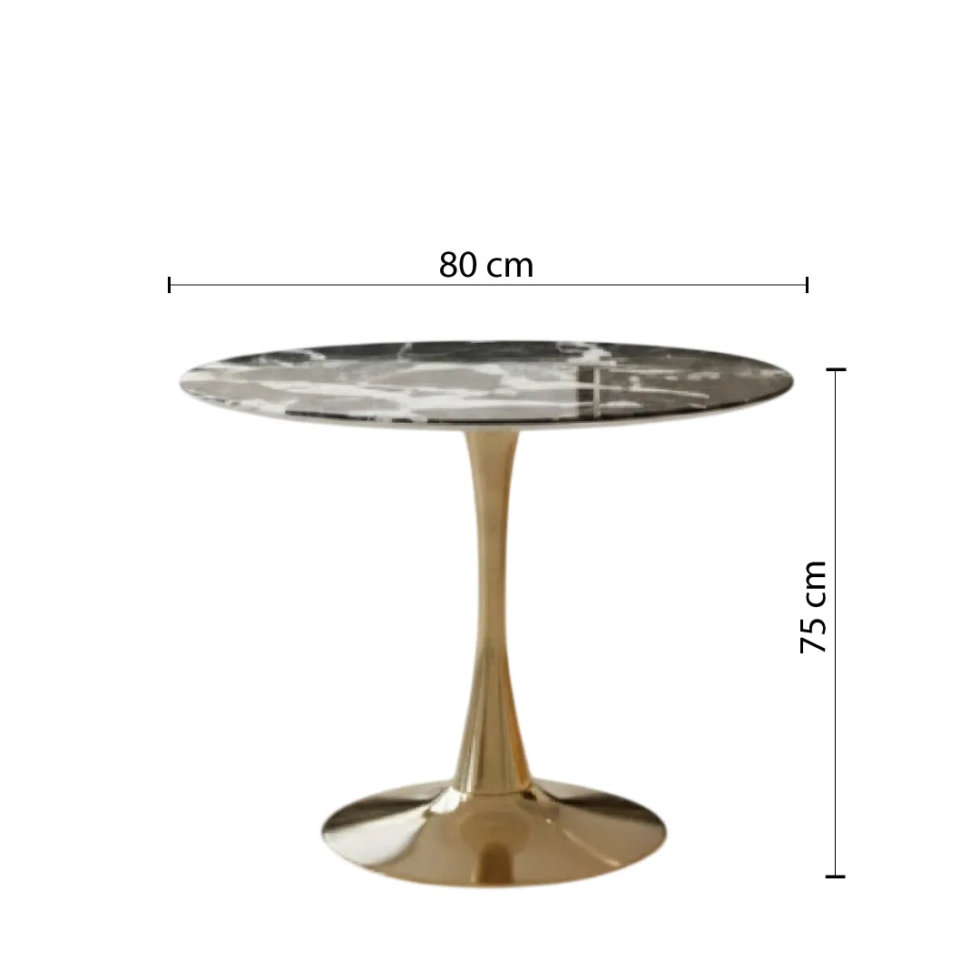 MESA REDONDA FRIDA 80CM COLOR NEGRA ON BASE DORADA