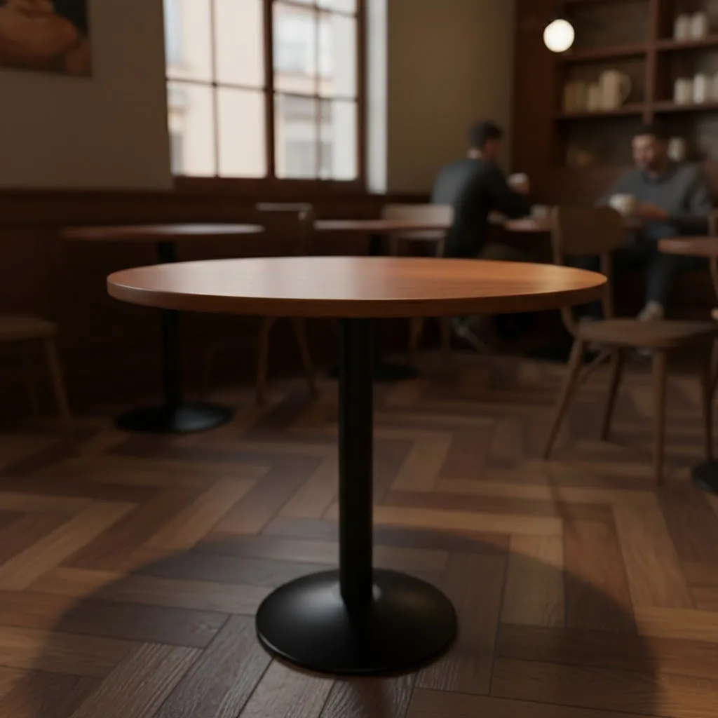 Eleva la estética de tu espacio con nuestra mesa circular de diseño contemporáneo. La combinación perfecta entre la calidez de la madera y la resistencia del metal, diseñada para adaptarse tanto a comedores modernos como a espacios comerciales de alto tráfico.