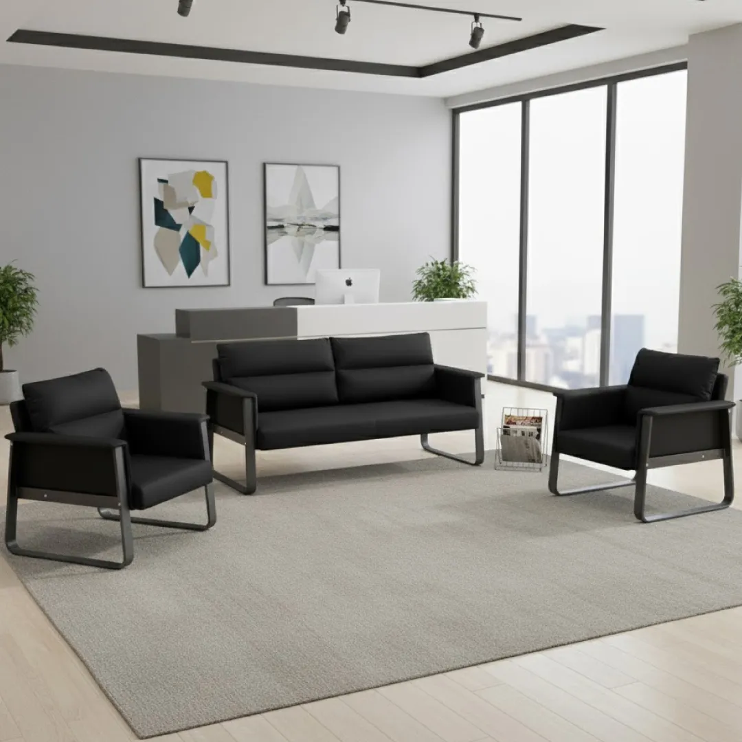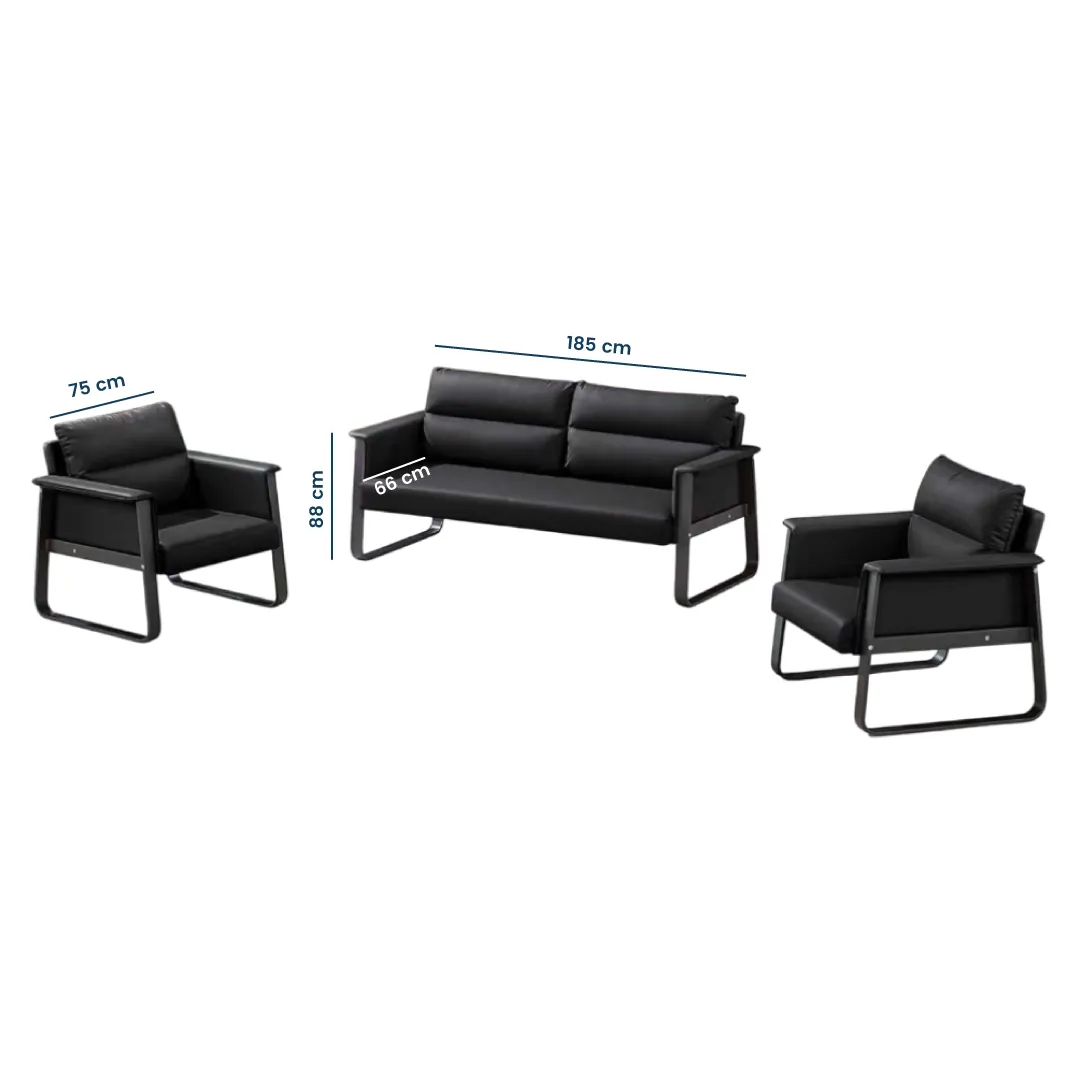 El set de sofás Francia en color negro es la elección perfecta para quienes buscan un mobiliario elegante y sofisticado para su hogar u oficina. Con un diseño contemporáneo y un tapizado de alta calidad, este set ofrece comodidad y estilo en igual medida. Los sofás cuentan con una estructura resistente y detalles bien acabados que garantizan durabilidad y confort. El color negro aporta un toque de distinción y versatilidad, haciéndolo fácil de combinar con diferentes estilos de decoración.